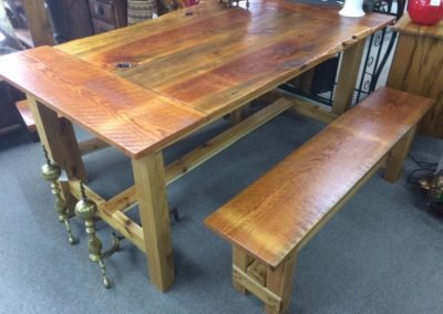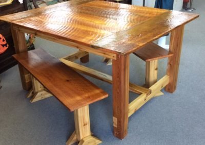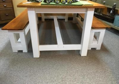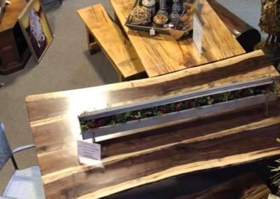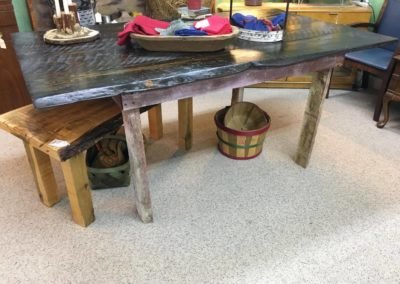 Our Furniture Designer, Mark Nyswonger handcrafts farm and live-edge tables with benches. Mark is also available to size and design them to your own specifications! We use many various types of select wood. Stop by anytime to see these beautiful tables in our Showroom and let us know if there is anything specific you are looking for.